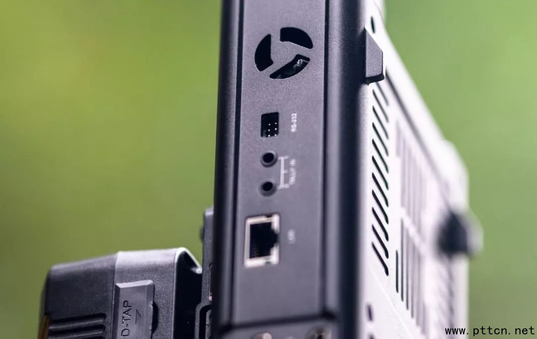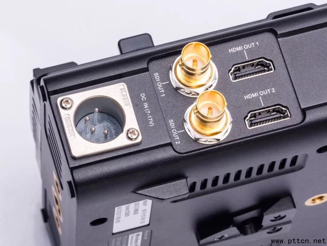 該接收器配備了兩個(gè)SDI和兩個(gè)HDMI輸出接口,下方是卡儂電源接口,在演播室的時(shí)候,可以選擇外接電源。