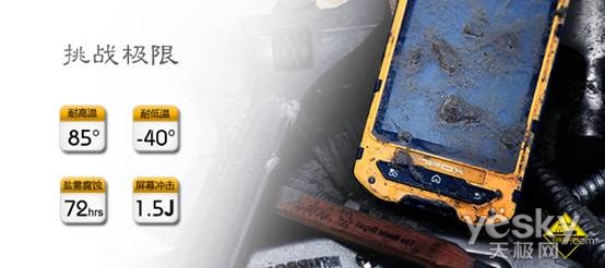 云狐J3經(jīng)國際SGS權(quán)威機構(gòu)認證,可達到IP68級防塵、防水及軍標810G防震,可防壓1.5噸。周邊高密度硬質(zhì)橡膠包裹,內(nèi)置防震內(nèi)核,屏幕采用軍工高硬度納米材質(zhì)制成,防劃防刮。并有地圖、高度計、氣壓計、指南針、對講機、溫度計、SOS呼救等豐富的戶外應用。