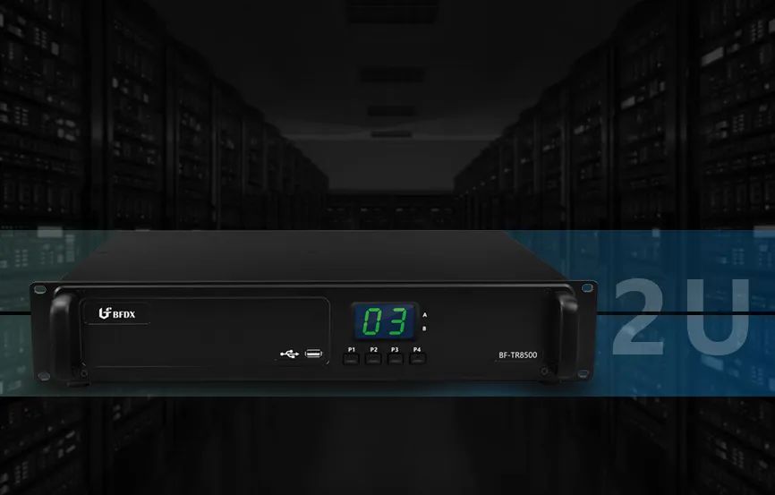 2U機架式結(jié)構(gòu) BF-TR8500數(shù)字中繼臺采用專業(yè)級19英寸2U標準機架式結(jié)構(gòu),外殼全金屬堅固耐用。用戶可根據(jù)使用頻率,自行配置合適的雙工器并內(nèi)置于機箱內(nèi),無需外置占用額外空間,節(jié)省部署面積,安裝部署方式多樣化。