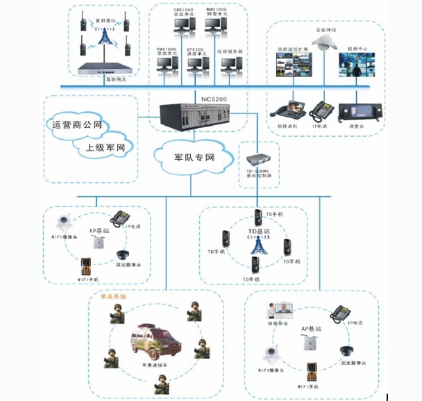 主頁(yè)(http://www.130131.com):震有科技:軍隊(duì)多媒體融合調(diào)度 組網(wǎng)圖:![]() 項(xiàng)目背景: 隨著軍隊(duì)軍事現(xiàn)代化的不斷發(fā)展,各類信息量的不斷增加,如在軍事作戰(zhàn)或演習(xí)中,上級(jí)首長(zhǎng)需要實(shí)時(shí)主動(dòng)獲取掌握前方各處戰(zhàn)場(chǎng)情況和各類數(shù)據(jù)信息,前方指戰(zhàn)員需要及時(shí)匯報(bào)前方戰(zhàn)場(chǎng)不斷變化的動(dòng)態(tài)相關(guān)數(shù)據(jù)信息,并接收上級(jí)下達(dá)的各種指揮調(diào)度命令等。通過(guò)傳統(tǒng)語(yǔ)音系統(tǒng)及視頻傳輸系統(tǒng)的簡(jiǎn)單組合,已不能滿足當(dāng)前軍隊(duì)重大演習(xí)、作戰(zhàn)指揮、軍事訓(xùn)練等方面的需求,很大程度上影響了軍隊(duì)作戰(zhàn)和軍事訓(xùn)練效果,不利于提高軍隊(duì)綜合作戰(zhàn)能力。 深圳震有科技公司作為一個(gè)多年從事下一代網(wǎng)絡(luò)通信研發(fā)和生產(chǎn)的企業(yè),憑借先進(jìn)技術(shù)和獨(dú)特優(yōu)勢(shì)積極參與部隊(duì)的信息化建設(shè),迎合軍隊(duì)對(duì)多媒體調(diào)度通信系統(tǒng)的需求,采用先進(jìn)的IP通信技術(shù),為部隊(duì)各軍兵種量身定制一體化的多媒體調(diào)度融合通信解決方案。 系統(tǒng)介紹: 震有科技軍隊(duì)多媒體調(diào)度通信系統(tǒng)針對(duì)各軍分區(qū)具體業(yè)務(wù)需求,借助于各軍分區(qū)現(xiàn)有的軍區(qū)IP核心傳輸網(wǎng)為傳輸平臺(tái)設(shè)計(jì)而成的基于IP網(wǎng)絡(luò)與有線、無(wú)線(WiFi、TD-SCDMA)多媒體調(diào)度融合通信系統(tǒng),該系統(tǒng)主要是實(shí)現(xiàn)了有線無(wú)線統(tǒng)一調(diào)度、音視頻聯(lián)動(dòng)調(diào)度、視頻監(jiān)控以及其他相關(guān)的功能,例如電話會(huì)議、視頻會(huì)議、錄音錄像、信息發(fā)布與共享、應(yīng)急音視頻聯(lián)動(dòng)調(diào)度、視頻回傳與回放等增值業(yè)務(wù)功能。 震有科技軍隊(duì)多媒體調(diào)度通信系統(tǒng)同時(shí)體現(xiàn)了3G(TD-SCDMA)多媒體調(diào)度系統(tǒng)在軍區(qū)的應(yīng)用一體化的無(wú)線解決方案,方案主要分為基于TD-MSC核心交換3G移動(dòng)通信車多媒體調(diào)度平臺(tái)與軍區(qū)總部與軍分區(qū)總部多媒體融合通信調(diào)度中心兩部分組成。3G移動(dòng)通信車多媒體調(diào)度平臺(tái)可以通過(guò)軍用衛(wèi)星、軍用光傳輸網(wǎng)絡(luò)及中國(guó)移動(dòng)為軍區(qū)開通的專用傳輸通道等方式與軍區(qū)和軍分區(qū)多媒體調(diào)度中心互聯(lián)互通,實(shí)現(xiàn)整個(gè)軍區(qū)多媒體調(diào)度融合通信臺(tái)一體化的應(yīng)用,滿足了軍區(qū)信息化建設(shè)的需求。 (本站原創(chuàng),廠商供稿。未經(jīng)授權(quán)不得轉(zhuǎn)載,轉(zhuǎn)載敬請(qǐng)注明來(lái)源:“中國(guó)集群通信網(wǎng) www.130131.com ”,如需轉(zhuǎn)載,請(qǐng)注明來(lái)源和作者,謝謝合作。 (中國(guó)集群通信網(wǎng) | 責(zé)任編輯:陳曉亮) |