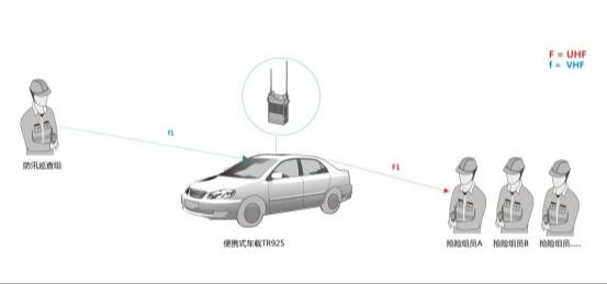 ![]() 北峰通信針對當前防汛搶險現存難點,打造以“異頻中繼臺(BF-TR925)+跨段中繼臺(BF-TR925D)+數字終端(BF-TD910)”為組網架構的便攜式解決方案: ①跨部門臨時互通 應急救援、公安、消防、通信、電力、醫療衛生、交通等應急搶險隊近千人展開防洪搶險,由于不同部門頻點不同,如何確保部門內部上下級、跨部門互通,同時保證互不干擾,成為防汛期間應急通信的首要考慮。