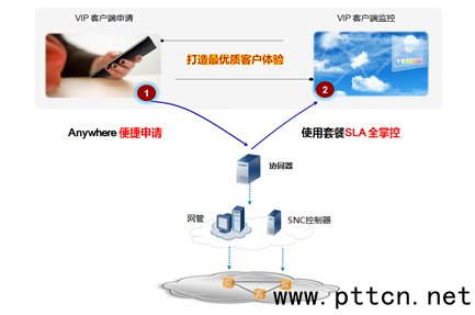 業(yè)界領(lǐng)先的SDN架構(gòu)設(shè)計(jì)為集客業(yè)務(wù)經(jīng)營(yíng)提供了最大的靈活性和最高的效率,有效支撐中國(guó)移動(dòng)集客經(jīng)營(yíng)戰(zhàn)略。 2、華為SPTN 助力集客經(jīng)營(yíng)實(shí)現(xiàn)業(yè)務(wù)申請(qǐng)APP化、業(yè)務(wù)SLA自在掌握 依據(jù)華為SPTN解決方案SDN架構(gòu)開(kāi)放的API接口(應(yīng)用程序編程接口),中國(guó)移動(dòng)可靈活定制開(kāi)發(fā)集團(tuán)客戶專用的APP客戶端,提供客戶業(yè)務(wù)申請(qǐng)及業(yè)務(wù)SLA詳細(xì)呈現(xiàn)。集客業(yè)務(wù)辦理從原來(lái)的營(yíng)業(yè)廳辦理轉(zhuǎn)移到客戶平板電腦、手機(jī)等手持終端設(shè)備上辦理。同時(shí),VIP客戶還可以通過(guò)手持終端隨時(shí)隨地掌握租用業(yè)務(wù)的SLA信息,極大地提升了客戶體驗(yàn)。