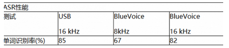 表II發(fā)送端BLUEVOICE存儲(chǔ)器占用 2) ASR性能 BlueVoice在功耗、處理性能和存儲(chǔ)器占用方面表現(xiàn)出的可行性并不能保證語(yǔ)音信號(hào)質(zhì)量在接收端達(dá)到可以接受的水平,在BlueVoice解決方案性能評(píng)估最后,我們利用一個(gè)網(wǎng)絡(luò)ASR服務(wù)進(jìn)行了大量的傳輸測(cè)試,在接收端測(cè)量ASR 性能。16 kHz USB麥克風(fēng)和8 kHz/16 kHz BlueVoice系統(tǒng)以并行方式記錄若干個(gè)包含已知英文單詞的音頻采樣(作為參考),并將其傳輸?shù)紸SR引擎,表III列出了不同解決方案的單詞識(shí)別率比較測(cè)試結(jié)果。測(cè)試結(jié)果證明,ADPCM壓縮沒(méi)有降低信號(hào)質(zhì)量,因此適合ASR應(yīng)用:BlueVoice 16 kHz配置的性能十分接近USB麥克風(fēng),而 8 kHz系統(tǒng)的性能稍有降低(18 %),適用于低功耗要求極嚴(yán)的應(yīng)用。事實(shí)上,8 kHz系統(tǒng)以16 kHz配置50%的功耗取得了相同的ASR性能。