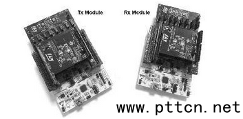 圖6. BlueVoice框圖 圖7:發(fā)送器和接收器原型 1) 功耗、存儲(chǔ)器占用和性能需求 如前文所述,我們把BlueVoice應(yīng)用實(shí)現(xiàn)在一個(gè)硬件設(shè)備上,該硬件設(shè)備使用意法半導(dǎo)體的 STM32 Nucleo開(kāi)發(fā)板充當(dāng)主機(jī),并使用低能耗藍(lán)牙網(wǎng)絡(luò)模塊充當(dāng)控制設(shè)備。表1列出了在BlueVoice的廣播、連接和傳輸三個(gè)不同狀態(tài)下,主機(jī)和控制設(shè)備 (STM32和BlueNRG)的功耗值。這些數(shù)據(jù)是在3.3 V工作電壓時(shí)的測(cè)量值,對(duì)8 kHz和16 kHz配置的功耗進(jìn)行了比較。必須強(qiáng)調(diào)的是,微控制器功耗完全取決于硬件特征和低功耗配置,因此,微控制器功率是在計(jì)算總功耗時(shí)加在總功耗中與平臺(tái)相關(guān)的數(shù)值。 本表所列數(shù)值可以視為一個(gè)指示性參考值,可能會(huì)隨實(shí)際應(yīng)用情況而發(fā)生變化。