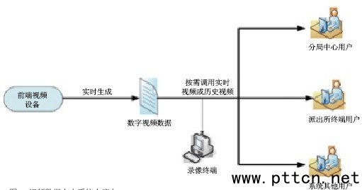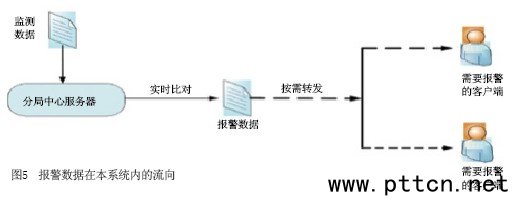 圖5 報(bào)警數(shù)據(jù)在本系統(tǒng)內(nèi)的流向 視頻數(shù)據(jù)的流向
