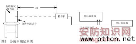 ·按圖3布置測(cè)試環(huán)境。將分辨率測(cè)試卡置于標(biāo)準(zhǔn)測(cè)試燈光盒上,距攝像機(jī)約3m遠(yuǎn)。攝像機(jī)的視頻輸出端接波形監(jiān)視器,并使波形監(jiān)視器的輸出連至高分辨率黑白監(jiān)視器(600線以上)上; ·將景物照度設(shè)定為2000lx,光源色溫設(shè)定為3200K; ·調(diào)節(jié)鏡頭焦距(或選配合適的定焦鏡頭并前后稍稍移動(dòng)攝像機(jī))使分辨率卡的圖像充滿監(jiān)視器的屏幕,并通過精確對(duì)焦使圖像最清晰; ·用選行示波器觀察圖2所示的分辨率卡,就可得到圖4所示的波形; ·調(diào)節(jié)鏡頭光圈使信號(hào)白電平達(dá)到100%(700mV),則此時(shí)調(diào)制深度剛超過5%的電視線數(shù)即為該攝像機(jī)的極限分辨率。 最低照度 最低照度的含義及條件 眾所周知,攝像機(jī)說明書中的最低照度指標(biāo)是非常重要的,因?yàn)樗呛饬繑z像機(jī)優(yōu)劣的一個(gè)重要參數(shù)。這個(gè)指標(biāo)說明了攝像機(jī)能攝取監(jiān)控場(chǎng)景目標(biāo)上照度的最低值。并且,它也是當(dāng)被攝景物的光亮度低到一定程度,而使攝像機(jī)輸出的視頻信號(hào)電平低到某一規(guī)定值時(shí)的景物光亮度值。確切地說,最低照度是攝像機(jī)產(chǎn)生的亮度輸出電平為額定標(biāo)準(zhǔn)電平700mv的一半時(shí)被攝物體的照度值。