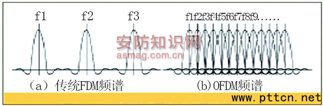 主頁(yè)(http://www.130131.com):CDMA與OFDM的特點(diǎn)及比較 【中國(guó)集群通信網(wǎng)】在討論CDMA-OFDM組合調(diào)制這種新技術(shù)之前,先分析一下CDMA及OFDM兩者各自的技術(shù)特點(diǎn)及優(yōu)缺點(diǎn)。 CDMA是基于PN碼(偽隨機(jī)噪聲)的擴(kuò)頻通信,由于信號(hào)頻譜的擴(kuò)展,因此在通信中,信號(hào)的傳輸功率很小,不易干擾別的設(shè)備,而且不易被截獲,具有良好的保密性;同時(shí)由于擴(kuò)展了頻譜,因此抗頻率選擇性衰落能力強(qiáng),抗多普勒頻移能力強(qiáng);當(dāng)然,由于PN碼的尖銳自相關(guān)特性能消除多徑影響,因而抗多徑干擾的能力強(qiáng),加上CDMA又普遍采用了RAKE分集接收技術(shù),更增強(qiáng)了抗多徑干擾和抗衰落能力。 CDMA由于采用了同頻發(fā)射接收,用PN碼作地址碼實(shí)現(xiàn)多路通信,因此在給定的帶寬下,CDMA系統(tǒng)容量取決于PN碼的設(shè)計(jì)及碼域范圍,這也使得CDMA難以適應(yīng)高速(>10Mbps)無(wú)線網(wǎng)絡(luò)視頻通信。此外,直擴(kuò)(DS)的CDMA遠(yuǎn)近特性不好,需要雙向多環(huán)的精密的功率控制。 FDM/FDMA(頻分復(fù)用/多址)技術(shù)其實(shí)是傳統(tǒng)的技術(shù),將較寬的頻帶分成若干較窄的子帶(子載波)進(jìn)行并行發(fā)送是最樸素的實(shí)現(xiàn)寬帶傳輸?shù)姆椒。但是為了避免各子載波之間的干擾,不得不在相鄰的子載波之間保留較大的間隔,如圖1(a)所示,這樣就大大降低了頻譜效率。近幾年,由于數(shù)字調(diào)制技術(shù)FFT(快速傅里葉變換)的發(fā)展,使FDM技術(shù)有了革命性的變化。FFT允許將FDM的各個(gè)子載波重疊排列,同時(shí)保持子載波之間的正交性(以避免子載波之間干擾)。如圖1(b)所示,部分重疊的子載波排列可以大大提高頻譜效率,因?yàn)橄嗤膸拑?nèi)可以容納更多的子載波,這就是OFDM技術(shù)。