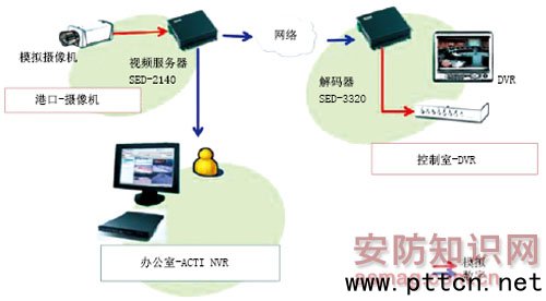 圖1 系統(tǒng)架構(gòu)圖 1、方案一:意大利威尼斯港口網(wǎng)絡(luò)監(jiān)控 在該方案中,日前使用了網(wǎng)絡(luò)視頻服務(wù)器與網(wǎng)絡(luò)視頻解碼器整合了一套混合網(wǎng)絡(luò)監(jiān)控解決方案,運(yùn)用于意大利威尼斯的海港,運(yùn)行效果良好,得到客戶的一致認(rèn)可。 整個(gè)海港一共有3個(gè)安全監(jiān)控室,每個(gè)安全監(jiān)控室都管理著前端的5臺(tái)高端模擬攝像機(jī)和一臺(tái)DVR作為錄像之用。該方案共有15臺(tái)1路的網(wǎng)絡(luò)視頻服務(wù)器和15臺(tái)解碼器。在中心管理辦公室有一臺(tái)NVR Server,作為管理人員的實(shí)時(shí)監(jiān)看、錄像及備份之用。 模擬攝像機(jī)將采集的畫面?zhèn)魉偷骄幋a器上進(jìn)行數(shù)字壓縮,壓縮以后再將視頻信號(hào)傳輸?shù)骄W(wǎng)絡(luò)上進(jìn)行數(shù)字化并保存到本地NVR服務(wù)器上。在此過程中,NVR軟件主動(dòng)連接視頻服務(wù)器和網(wǎng)絡(luò)攝像機(jī)并提出信號(hào)請求,隨后由網(wǎng)絡(luò)將信號(hào)傳輸給NVR錄像及其他后續(xù)操作。該網(wǎng)絡(luò)架構(gòu)中解碼器的操作與NVR相同,在解碼器中可以設(shè)置編碼器的IP地址,使解碼器在特定的時(shí)間里,用預(yù)先設(shè)置的編碼器IP地址連接前端的編碼器。再執(zhí)行跟NVR相同的操作。其中所有傳輸信號(hào)均為數(shù)據(jù)流,前端不停的傳送數(shù)據(jù),后端NVR或解碼器不停的接收,直到NVR或解碼器要求停止為止。 在此處使用DVR主要有三個(gè)可能:第一,某些客戶仍然需要DVR,他原來的監(jiān)控點(diǎn)仍然可以用DVR錄像,新加的點(diǎn)用NVR錄像,這是第一種可能;第二,客戶需要將視頻畫面顯示在電視墻上,而用了解碼器以后,我們既可以在電視墻上顯示畫面,又可以直接將看到的東西錄下來,這是第二種可能;第三可能是操作員用慣了原來的DVR操作系統(tǒng),因此可以用DVR來保存一些比較重要的信息。但事實(shí)上,相比較DVR而言,NVR可以實(shí)現(xiàn)的功能更多更全面。該方案的主要優(yōu)勢在于,管理者完全可以按照其原先的監(jiān)控操作習(xí)慣來進(jìn)行管理,也就是說,原有的CCTV設(shè)備仍然被保留,管理者可通過CCTV的設(shè)備來管理網(wǎng)絡(luò)監(jiān)控系統(tǒng)。除此之外,海港的長距離性、布線的高成本,也是客戶選擇混合網(wǎng)絡(luò)監(jiān)控解決方案的關(guān)鍵。運(yùn)用ACTi的免費(fèi)捆綁軟件NVR,海港的高層管理人員可在辦公室通過網(wǎng)絡(luò)實(shí)時(shí)監(jiān)看前端整個(gè)的狀況,避免意外發(fā)生。 2、方案二:挪威港口網(wǎng)絡(luò)監(jiān)控 目前,隨著ISPS(國際航運(yùn)及港口安全)對(duì)港口安全要求越來越嚴(yán)苛,Westcon AS在其原有的監(jiān)控基礎(chǔ)上進(jìn)行擴(kuò)充。為了解決成本問題,Westcon AS決定用網(wǎng)絡(luò)監(jiān)控的方案來替代布線的成本。在現(xiàn)有的局域網(wǎng)和Intenet基礎(chǔ)上,使用網(wǎng)絡(luò)監(jiān)控解決方案擁有更大的靈活性,并使安裝臨時(shí)攝像機(jī)監(jiān)控點(diǎn)變得操作簡便。Westcon AS使用網(wǎng)絡(luò)視頻服務(wù)器連接其原先的模擬攝像機(jī)并通過網(wǎng)絡(luò)傳輸視頻流。而新的監(jiān)控點(diǎn),就安裝網(wǎng)絡(luò)攝像機(jī)與網(wǎng)絡(luò)快球攝像機(jī)。一共有16路網(wǎng)絡(luò)攝像機(jī)、網(wǎng)絡(luò)視頻服務(wù)器及網(wǎng)絡(luò)快球攝像機(jī)被使用在此方案中。 該方案是一個(gè)標(biāo)準(zhǔn)的網(wǎng)絡(luò)監(jiān)控架構(gòu),前端是模擬攝像機(jī)加視頻服務(wù)器。同樣的,客戶不需要替換原來的模擬攝像機(jī),就可以實(shí)現(xiàn)網(wǎng)絡(luò)監(jiān)控的模式。如果客戶想增加點(diǎn)位也十分容易,不需要再額外增加設(shè)備,只需直接連接網(wǎng)絡(luò)攝像機(jī)即可,然后NVR直接連網(wǎng)絡(luò)攝像機(jī),就可以管理監(jiān)控畫面了。對(duì)于NVR來說,無論管理者身處何處,只要擁有PC,就能在任何地方成立監(jiān)控中心;只要配置足夠的存儲(chǔ)容量,就可以在任何地方錄像。在整個(gè)網(wǎng)絡(luò)中,任何一臺(tái)PC,都能通過網(wǎng)絡(luò)訪問到監(jiān)控畫面,并對(duì)其進(jìn)行管理,客戶想要幾個(gè)監(jiān)控中心,就能建立幾個(gè)監(jiān)控中心,哪怕是所有的辦公室,只要有裝了NVR的PC,所有辦公室都可以成為監(jiān)控中心。