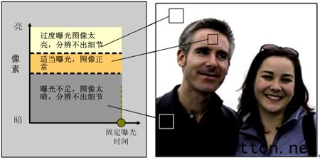 DPS攝像機(jī)逐點(diǎn)采樣多次曝光的圖像 寬動(dòng)態(tài)的發(fā)展歷史 CCD成像器件在上世紀(jì)60年代初開始應(yīng)用,現(xiàn)在技術(shù)發(fā)展的已經(jīng)非常成熟。從數(shù)碼相機(jī)、監(jiān)控?cái)z像機(jī)到專業(yè)廣播級(jí)攝像機(jī)大部分在使用CCD。但在廣播級(jí)攝像機(jī)世界排名首位的池上公司新推出的廣播級(jí)高清硬磁盤攝錄一體機(jī)是采用2/3英寸3CMOS成像的,各項(xiàng)指標(biāo)都不低于CCD攝像機(jī)。在監(jiān)控行業(yè)一直是CCD攝像機(jī)的天下,但近兩年DPS成像技術(shù)的寬動(dòng)態(tài)攝像機(jī)漸漸進(jìn)入人們的視線。從原理上講,CCD寬動(dòng)態(tài)攝像機(jī)是采用2次曝光技術(shù)進(jìn)行DPS處理,而DPS(Digital Pixel System)數(shù)字成像系統(tǒng),是每個(gè)像素點(diǎn)將光信號(hào)直接轉(zhuǎn)換數(shù)字信號(hào),每個(gè)像素點(diǎn)根據(jù)射入光線的亮度計(jì)算曝光時(shí)間,它的寬動(dòng)態(tài)范圍可以達(dá)到120dB 。從原理上講DPS技術(shù)更先進(jìn),它能像人的眼睛所具有的寬動(dòng)態(tài)調(diào)節(jié)功能。雖然它剛剛投入商業(yè)運(yùn)作才兩三年,芯片組從D1000、D1500、D2000到D2500幾種,圖像清晰度從480線提升到540線,最低照度從1.0Lux/F1.2,到0.5Lux/F1.2,但已經(jīng)在寬動(dòng)態(tài)方面顯示出優(yōu)異的性能。由于CCD在原理上的局限性,在寬動(dòng)態(tài)技術(shù)上不可能有很大的發(fā)展,而DPS技術(shù)還處于年輕的發(fā)展期,因此在寬動(dòng)態(tài)攝像機(jī)的照度上,還達(dá)不到很好的指標(biāo),在光線很強(qiáng)的白天,寬動(dòng)態(tài)效果很好,在光線較暗的時(shí)候,寬動(dòng)態(tài)效果不明顯。但隨著DPS技術(shù)的發(fā)展,它的全項(xiàng)指標(biāo)將趕超CCD,將逐漸接近人眼的自動(dòng)調(diào)節(jié)功能,而寬動(dòng)態(tài)功能也將成為攝像機(jī)必備的基本功能。 其優(yōu)勢(shì)在哪,缺點(diǎn)在哪? 那寬動(dòng)態(tài)的優(yōu)缺點(diǎn)在哪里呢?我們先從寬動(dòng)態(tài)的概念來認(rèn)識(shí)它. 什么叫寬動(dòng)態(tài)?簡(jiǎn)單地說寬動(dòng)態(tài)就是場(chǎng)景中特別亮的部位和特別暗的部位同時(shí)都能看得特別清楚。寬動(dòng)態(tài)范圍是圖像能分辨最亮的亮度信號(hào)值與能分辨的最暗的亮光信號(hào)值的比值。 寬動(dòng)態(tài)的表現(xiàn)方式以“倍數(shù)”或“dB”來表示,在以100IRE為標(biāo)準(zhǔn)時(shí),換算公式:N dB=20log(V2/V1)。普通攝像機(jī)(稱V1)的寬動(dòng)態(tài)值為10dB ,如寬動(dòng)態(tài)為48 dB ,與普通攝像機(jī)之間的差為38 dB,V2/V1=80,說明與普通攝像機(jī)寬動(dòng)態(tài)差為80倍,松下第三代寬動(dòng)態(tài)攝像機(jī)是54 dB,V2/V1=160倍。 池上ISD-A10攝像機(jī)典型動(dòng)態(tài)范圍95 dB,V2/V1=17782倍,最大寬動(dòng)態(tài)范圍120dB,V2/V1=316227倍。 從“倍數(shù)”上看,采用Pixim DPS技術(shù)的攝像機(jī),寬動(dòng)態(tài)范圍要比CCD寬動(dòng)態(tài)范圍有極大的提高。 對(duì)于DPS技術(shù),每個(gè)像素對(duì)應(yīng)的光線都可以優(yōu)化曝光,每一幀數(shù)據(jù)讀取時(shí)間只需0.8毫秒(傳統(tǒng)CCD技術(shù)則需數(shù)十毫秒),這樣系統(tǒng)可以對(duì)每個(gè)像素進(jìn)行多次單獨(dú)采樣;而成像系統(tǒng)控制著每個(gè)像素的最佳采樣時(shí)間,在每個(gè)像素達(dá)到最佳狀態(tài)時(shí)存儲(chǔ)像素信息。在所有像素被采集后,系統(tǒng)再對(duì)其進(jìn)行處理,最終形成高質(zhì)量的圖像。即使在最苛刻的光照條件下,也可捕捉到清晰、逼真的圖像,再也不會(huì)因?yàn)殛幱啊⒀9、反射和太陽光而使圖像發(fā)暗或被破壞。