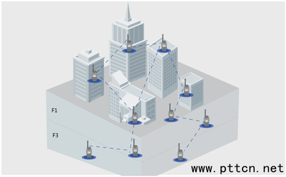 (城市機(jī)動(dòng)組網(wǎng)圖) BF-TD930自組網(wǎng)對(duì)講機(jī)取代昂貴的中繼臺(tái),并且能解決中繼臺(tái)無法解決的信號(hào)盲區(qū),同時(shí)具有節(jié)省頻率資源、使用便捷、便于攜帶和快速部署等特點(diǎn)。BF-TD930除了自組網(wǎng)功能以外,還支持定制北峰智能互聯(lián)系統(tǒng)版本、DMR/PDT集群系統(tǒng)版本,可適配不同調(diào)度系統(tǒng)的使用,滿足不同行業(yè)、不同場景的使用需求,節(jié)省用戶設(shè)備成本支出。