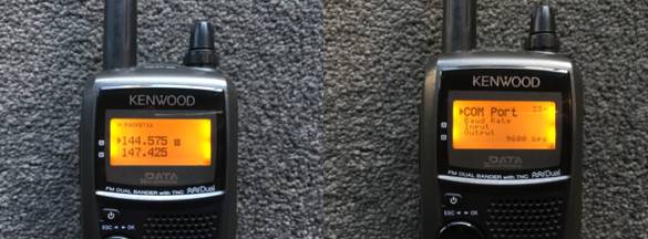 連接完成示意圖 所有硬件和軟件準備好之后,只需要一步即可完成連接,那就是插上USB數(shù)據(jù)線。如果電腦無法識別連接上的硬件,需要安裝PL-2302(USB轉(zhuǎn)RS232)驅(qū)動程序。 菜單設(shè)置與使用 要使得網(wǎng)關(guān)能夠正常工作,還需要對電臺和軟件的菜單進行正確的設(shè)置。首先,對TH-D72E電臺進行設(shè)置。 其一,要將電臺的TNC切換到正確的模式。通過按“TNC”按鈕(數(shù)字2號鍵)兩下,將內(nèi)置TNC切換到“PACKET”(數(shù)據(jù))模式,屏幕上會顯示“PACKET12”字樣。在這個模式下,TNC將只進行APRS數(shù)據(jù)的編解碼工作,電臺自身不會存儲所接收解碼的APRS數(shù)據(jù),而是將其傳遞給電腦端使用。這個模式也就是大家常提到的“KISS模式”(KISS=Keep It Simple, Stupid)。 其二,要確認電臺的數(shù)據(jù)通信速率是否正確。進入電臺的菜單模式,找到APRS選項的33號菜單,將“COM PORT”(串口)的通信速率調(diào)整為9600bit/s即可。