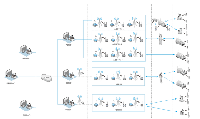 ![]() 解決方案 在深入調(diào)研森林火場通信實際需求的基礎(chǔ)之上,結(jié)合火場通信的主要任務(wù)包括省、市、縣,大(支、總)隊調(diào)度中心或指揮中心的日常通勤及應(yīng)急現(xiàn)場的聯(lián)絡(luò);迅速、準確地傳達信息,以便于不間繼的指揮、緊密的協(xié)同作戰(zhàn)為目的,北峰“3+3+3”網(wǎng)格化數(shù)字超短波森林防火應(yīng)急通信解決方案應(yīng)運而生。 該方案以行政區(qū) (縣)為最小單元格,以固定架設(shè)中繼基站為主、車載移動中繼基站為輔,充分考慮森林撲火部(分)隊的建制特點,在滿足平戰(zhàn)結(jié)合要求的同時,突出保障撲火作戰(zhàn)行動中的指揮通信需求。獨有的網(wǎng)格化大區(qū)制靈活組網(wǎng)設(shè)計方案,可以實現(xiàn)全區(qū)全網(wǎng)廣域覆蓋,各級建制單位既可獨立成網(wǎng)使業(yè)務(wù)層層分流,又可互聯(lián)互通組成一張大網(wǎng)使信息資源和任務(wù)交互共享,保障現(xiàn)場兵力部署等動態(tài)信息內(nèi)容使指揮可視化、扁平化。