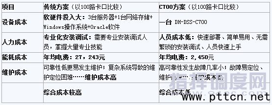 高可靠性 6、低能耗 以接入100臺(tái)卡口攝像機(jī)為例,在同等接入規(guī)模條件下,C700“圖片直存”解決方案相比傳統(tǒng)方案能耗降低91%,年均節(jié)省電費(fèi)24,793元。