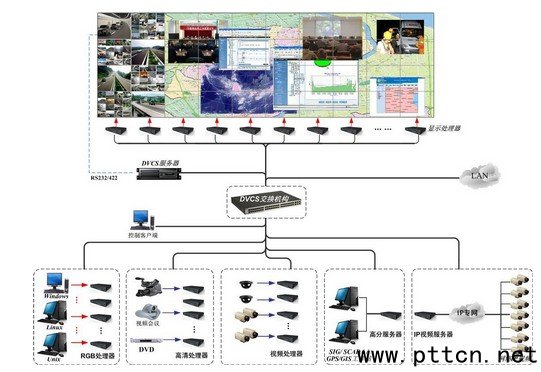 圖:DVCS分布式控制系統(tǒng)的DLP大屏幕系統(tǒng)拓撲圖 項目總結 針對煤礦調度指揮中心DLP大屏幕系統(tǒng),DVCS分布式圖像控制系統(tǒng)解決方案獨具優(yōu)勢: (1)超強的計算機RGB信號處理顯示能力 DVCS分布式圖像控制系統(tǒng)突破傳統(tǒng)PCI架構多屏圖像控制器的技術瓶頸,可接入的計算機RGB信號及視頻信號的數量幾乎不受限制(取決于網絡交換機規(guī)模),滿足大量計算機RGB信號同時接入及顯示,同時可支持任意拼接規(guī)模的大中型顯示墻。整個大屏幕系統(tǒng)的信號處理分散在各個信號處理器中,每路信號經由獨立的處理器單通道處理,因此具有極高速度處理能力,能夠確保所有信號實時顯示。 (2)全數字化高品質圖像顯示 DVCS分布式圖像控制系統(tǒng)是純數字系統(tǒng),所有信號的處理及傳輸過程全部采用數字化技術,確保信號沒有噪聲干擾,并可被無衰減傳輸至很遠距離,實現高品質圖像顯示效果。DVCS信號處理器可在信號源處就近安裝,顯示處理器可內置于DLP單元內,使DVI信號連接線纜最短,充分保證信號顯示的高品質。 (3)多用戶、多平臺兼容控制能力 DVCS分布式控制系統(tǒng)采用B/S架構控制軟件,只需通過IE瀏覽器登錄DVCS服務器即可對大屏幕進行控制管理,支持Windows、Unix、Linux等任何系統(tǒng)平臺的用戶控制端。采用直觀的圖形用戶界面,具有信號源預覽及信號回顯功能?蓪︼@示內容進行預案設置、存儲和調用,并可設置顯示預案自動定時執(zhí)行。支持多人同時對大屏幕進行控制管理,支持大屏幕分區(qū)管理,支持多級管理權限劃分,支持遠程網絡控制。 (4)高度的系統(tǒng)穩(wěn)定性 DVCS分布式控制系統(tǒng)的圖像處理被分布在各個信號處理器進行,某一臺處理器出現故障只影響該路信號或某一單元顯示,并不影響其它處理器的正常工作。同時,各信號處理器均具有超長平均無故障時間(MTBF),且具有通用性,可簡單快速更換,更換故障處理器不會影響DVCS系統(tǒng)正常運行,新處理器自動添加識別運行,實現真正熱插拔,使MTTR(平均故障維護時間)縮到最短。 (5)超強的系統(tǒng)擴展能力 DVCS分布式控制系統(tǒng)可根據用戶需要方便靈活進行擴展,增加顯示單元或信號源時,只需增加各類信號處理器的數量即可,不需要更換任何設備,具有傳統(tǒng)DLP大屏幕系統(tǒng)無法比擬的超強系統(tǒng)擴展能力。同時不需要對擴展應用進行二次開發(fā),降低系統(tǒng)擴展費用。 (6)綠色環(huán)保 DVCS分布式控制系統(tǒng)中所有輸入、輸出信號處理器之間的聯接均采用標準CAT網絡電纜,與傳統(tǒng)的模擬信號線纜及DVI光纖傳輸設備相比,極大地降低了調度指揮中心的布線工程量及成本。同時,所有信號輸入/輸出處理器均采用1U的嵌入式設計,功耗僅為10W,節(jié)省系統(tǒng)運行成本,節(jié)能環(huán)保。 (中國集群通信網 | 責任編輯:陳曉亮) |