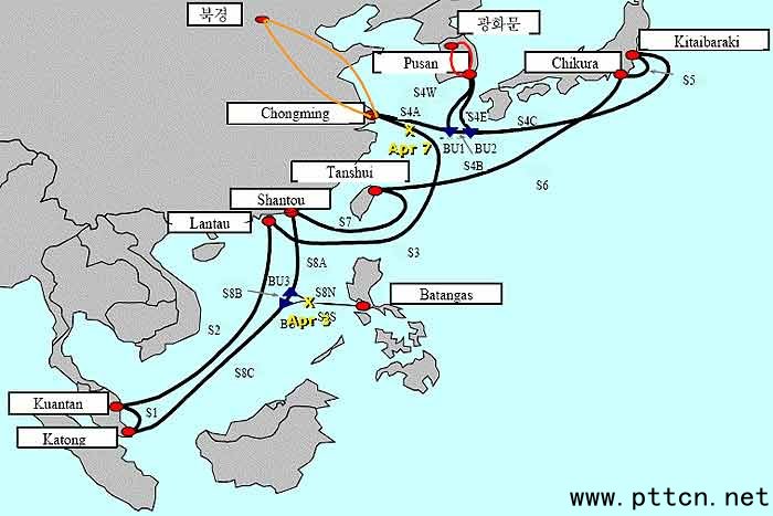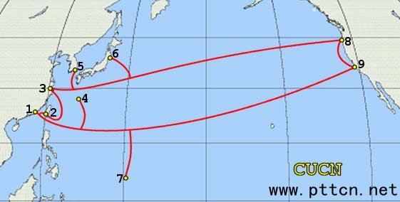 6. Trans-Pacific Express(TPE,泛太平洋)海底光纜 帶寬:5.12Tbps 長度:17700km 經(jīng)過地區(qū):中國大陸,臺(tái)灣,韓國,美國 入境地點(diǎn):上海,青島 網(wǎng)址: http://en.wikipedia.org/wiki/TPE_(cable_system)