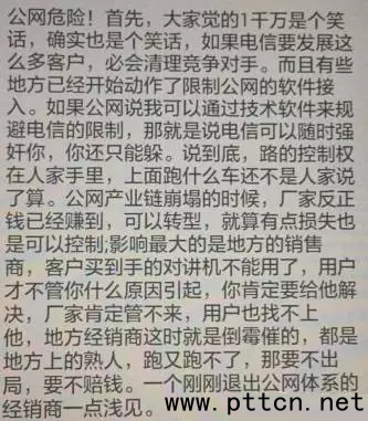 主頁(http://www.130131.com):電信天翼對(duì)講擴(kuò)容,公網(wǎng)對(duì)講如何應(yīng)對(duì) 導(dǎo)語 2015年9月25日,電信在成都召開天翼對(duì)講產(chǎn)品發(fā)布會(huì),是8月份天翼對(duì)講平臺(tái)5.2上線后開的首次發(fā)布會(huì),也可以說是誓師大會(huì)。 此次誓師大會(huì)反響"熱烈",有兩個(gè)關(guān)鍵詞:1.新增100萬。2.達(dá)到千萬用戶。 說明了兩個(gè)事實(shí):一.公網(wǎng)的春天來了。二.裁判開始下場(chǎng)參與游戲。 怎么說?下面我們一起來解析一下。 1 新增100萬 “天翼對(duì)講”從2010年商用以來,目前注冊(cè)用戶數(shù)已經(jīng)超過百萬,2015年目標(biāo)是新增100萬用戶,距離年底也就只剩2個(gè)多月了。話說出去了,肯定收不回,怎么辦?作為裁判肯定有辦法。 2 達(dá)到千萬用戶 隨著技術(shù)成熟和需求增長(zhǎng),數(shù)字對(duì)講機(jī)發(fā)展迅速。“模轉(zhuǎn)數(shù)”成為大勢(shì)所趨。公網(wǎng)對(duì)講也如雨后春筍般快速增長(zhǎng),“天翼對(duì)講”的目標(biāo)是五年內(nèi)達(dá)到千萬用戶。 從百萬到千萬,電信信心滿滿的背后,我們可以看出公網(wǎng)對(duì)講市場(chǎng)的巨大需求。 兩個(gè)關(guān)鍵詞一亮,電信會(huì)想出什么辦法?整個(gè)圈子都在等著電信祭大招。公網(wǎng)圈的朋友都知道,公網(wǎng)對(duì)講的主要流量提供者就是電信,但它本身自己也做天翼對(duì)講業(yè)務(wù),于是大家眾說紛紜。 3 大膽猜測(cè) 猜測(cè)一:有的朋友說電信會(huì)停掉電信卡。 猜測(cè)二:有的朋友說會(huì)通過技術(shù)手段屏蔽公網(wǎng)對(duì)講。