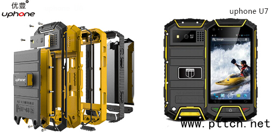 隨著用戶對于手機三防功能的關(guān)注,不免會有不慎專業(yè)的手機品牌廠商基于用戶需求而生產(chǎn)的三防手機面市,由于對三防手機的防護標(biāo)準(zhǔn)把握不當(dāng),也由于用戶對于三防手機認(rèn)知不全面情況下,致使用戶接收到錯誤的三防手機防護標(biāo)準(zhǔn)。因此,筆者以優(yōu)豊(uphone)U7為例來具體說明三防手機應(yīng)該會具備的明顯特性。 U7是一款具備IP68防護級別具有手機對講功能的三防手機,其主要采用了工業(yè)級雙色注塑工藝,從其外觀我們可看出U7主要利用軟硬膠相互貼合而成,內(nèi)部歷經(jīng)多層復(fù)合工藝處理,進口軟膠材質(zhì)經(jīng)過特殊的減壓模塊設(shè)計,用硬膠加螺絲加固機身,軟膠可緩沖沖擊力,從而達到防摔的目的,經(jīng)筆者實驗,U7從2米向下跌落其屏幕及外觀仍完好無損且可正常使用。