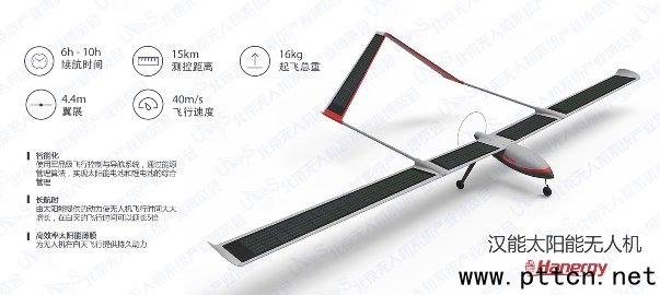 主頁(http://www.130131.com):太陽能無人機將首亮相北京無人機系統(tǒng)展 摘要:漢能太陽能無人機專注軍工級飛行與導(dǎo)航系統(tǒng),集合智能化、長航時和高效率太陽能薄膜三大特點,將首次在國內(nèi)UAS EXPO CHINA公開亮相,為無人機行業(yè)發(fā)展開拓新的視野。 2016北京國際無人機系統(tǒng)產(chǎn)業(yè)博覽會(UAS EXPO CHINA)將于6月19-21日在國家會議中心(鳥巢附近)隆重舉辦,是國內(nèi)起辦最早、規(guī)模最大、最專業(yè)、最具影響力的國際行業(yè)盛會,將吸引國內(nèi)外百余家優(yōu)秀展商參加。漢能控股集團致力于“用清潔能源改變世界”,作為全球化的清潔能源跨國公司和全球薄膜太陽能發(fā)電領(lǐng)導(dǎo)者,將攜太陽能無人機重裝登陸,系國內(nèi)首次公開亮相,熱忱歡迎廣大行業(yè)同仁撥冗蒞臨參觀洽談。 特點一、智能化 1、軍品級飛行控制與導(dǎo)航系統(tǒng): 不同于普通消費級飛控,太陽能無人機面向?qū)I(yè)級市場,使用軍品級飛行控制與導(dǎo)航系統(tǒng),性能卓越可靠。 可支持固定翼、多旋翼和復(fù)合翼3種布局,具有一鍵自動起飛和降落功能。 使用方便,操作便捷,可實現(xiàn)在空中懸停、盤旋、返航、定高、開傘。 完善的飛行狀態(tài)監(jiān)控、太陽能狀態(tài)監(jiān)控和應(yīng)急自動保持功能,有效降低用戶在使用過程中可能出現(xiàn)的損失。 2. 能量管理系統(tǒng): 通過卓越的能源管理算法,實現(xiàn)太陽能電池和鋰電池的綜合管理,發(fā)揮各種能源的自身優(yōu)勢,并將之與飛控導(dǎo)航系統(tǒng)集成,實時對各動力源進行最優(yōu)配置,最大化利用各動力源能量,提高飛行性能。 特點二、巡航時間長 綜合考慮無人機平臺與任務(wù)需求的結(jié)合,太陽能無人機針對各能源動力特性進行總體優(yōu)化。通過展弦比,氣動效率、動力選型、航電系統(tǒng)等各方面優(yōu)化,使無人機平臺整體功耗降低20%,升阻力提高15%。優(yōu)化后的無人機更加輕量化,由太陽能提供的動力使無人機飛行時間大大增長,在白天的飛行時間可以延長5倍,達(dá)到6到10個小時。 特點三、高效率薄膜太陽能