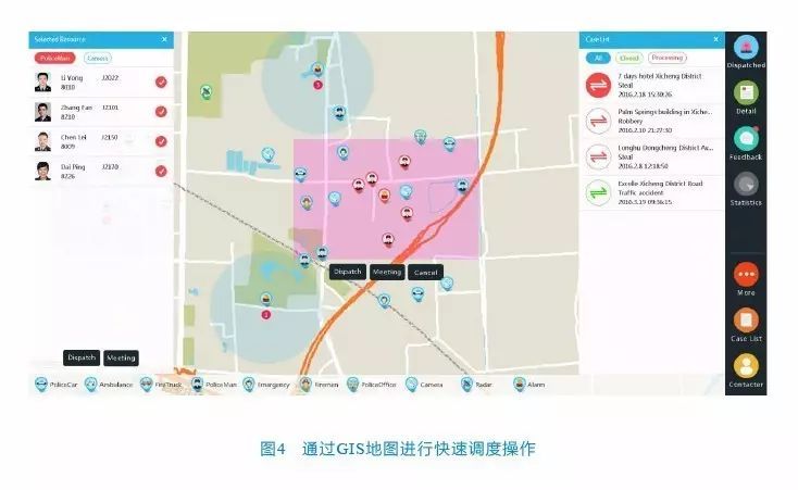 中興通訊應(yīng)急決策會(huì)商系統(tǒng)功能主要包括融合語(yǔ)音調(diào)度、融合視頻調(diào)度和融合GIS調(diào)度三大模塊。 融合語(yǔ)音調(diào)度:通過對(duì)各類語(yǔ)音系統(tǒng)(GSM/3G/4G手機(jī)、IP電話、無線集群、移動(dòng)警務(wù)終端)的統(tǒng)一接入,實(shí)現(xiàn)跨地區(qū)、跨部門、跨警種的統(tǒng)一指揮與高效協(xié)同。 融合視頻調(diào)度:通過對(duì)各類視頻系統(tǒng)(視頻會(huì)議系統(tǒng)、視頻監(jiān)控系統(tǒng)、無線單兵、移動(dòng)指揮終端、移動(dòng)警務(wù)終端、無人機(jī)、安防機(jī)器人等)的統(tǒng)一接入,實(shí)現(xiàn)對(duì)不同視頻源的視頻查看,及相互轉(zhuǎn)發(fā)、分發(fā)。針對(duì)重大突發(fā)事件,融合視頻調(diào)度系統(tǒng)可直接發(fā)起多點(diǎn)終端參與的聯(lián)席會(huì)議,可將現(xiàn)場(chǎng)攝像頭、移動(dòng)警務(wù)終端、無人機(jī)、安防機(jī)器人等的實(shí)時(shí)視頻加入會(huì)議,實(shí)現(xiàn)指揮決策全程可視。融合視頻調(diào)度是中興通訊應(yīng)急決策會(huì)商系統(tǒng)的重要特色,采用中興TrueSee沉浸式幻真技術(shù),幻真高清視頻會(huì)議的應(yīng)用為現(xiàn)代應(yīng)急決策會(huì)商帶來了全新的體驗(yàn)。它將多個(gè)指揮中心渾然連成一體,實(shí)現(xiàn)面對(duì)面的遠(yuǎn)程會(huì)商、協(xié)作和指揮效果。通過真人大小的遠(yuǎn)程圖像呈現(xiàn)、自然眼神交流、全方位聲像同位等先進(jìn)技術(shù),凸顯“空間延伸”和“觸手可及”效果,大幅提升溝通效率和溝通效果。 融合視頻調(diào)度:通過對(duì)各類視頻系統(tǒng)(視頻會(huì)議系統(tǒng)、視頻監(jiān)控系統(tǒng)、無線單兵、移動(dòng)指揮終端、移動(dòng)警務(wù)終端、無人機(jī)、安防機(jī)器人等)的統(tǒng)一接入,實(shí)現(xiàn)對(duì)不同視頻源的視頻查看,及相互轉(zhuǎn)發(fā)、分發(fā)。針對(duì)重大突發(fā)事件,融合視頻調(diào)度系統(tǒng)可直接發(fā)起多點(diǎn)終端參與的聯(lián)席會(huì)議,可將現(xiàn)場(chǎng)攝像頭、移動(dòng)警務(wù)終端、無人機(jī)、安防機(jī)器人等的實(shí)時(shí)視頻加入會(huì)議,實(shí)現(xiàn)指揮決策全程可視。融合視頻調(diào)度是中興通訊應(yīng)急決策會(huì)商系統(tǒng)的重要特色,采用中興TrueSee沉浸式幻真技術(shù),幻真高清視頻會(huì)議的應(yīng)用為現(xiàn)代應(yīng)急決策會(huì)商帶來了全新的體驗(yàn)。它將多個(gè)指揮中心渾然連成一體,實(shí)現(xiàn)面對(duì)面的遠(yuǎn)程會(huì)商、協(xié)作和指揮效果。通過真人大小的遠(yuǎn)程圖像呈現(xiàn)、自然眼神交流、全方位聲像同位等先進(jìn)技術(shù),凸顯“空間延伸”和“觸手可及”效果,大幅提升溝通效率和溝通效果。 融合GIS調(diào)度: 通過GIS地圖界面,不僅可以實(shí)時(shí)動(dòng)態(tài)獲取警力資源部署狀態(tài),還可直接進(jìn)行各視頻源的視頻瀏覽,及點(diǎn)擊呼叫、框/圈選呼叫等“一鍵式”快速調(diào)度操作,及時(shí)高效地處置突發(fā)事件(見圖4)。