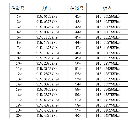 900MHz無(wú)中心自集群信道對(duì)應(yīng)表