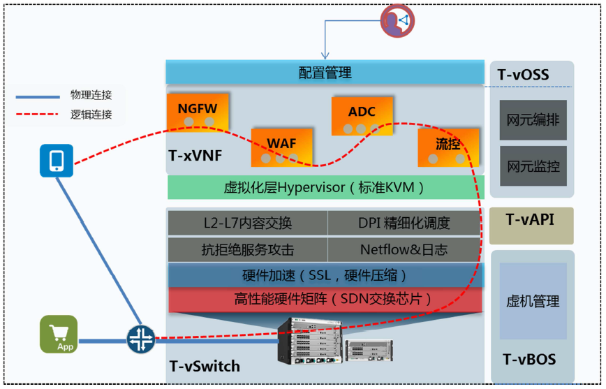 主頁(http://www.130131.com):太一星晨MSG多業(yè)務融合安全網(wǎng)關 太一星晨MSG多業(yè)務融合安全網(wǎng)關,是適用于傳統(tǒng)大中型網(wǎng)絡邊界、云數(shù)據(jù)中心、SDN及其他新業(yè)務環(huán)境的新一代應用網(wǎng)絡虛擬化平臺產(chǎn)品。太一星晨MSG多業(yè)務融合安全網(wǎng)關首次實現(xiàn)了軟硬件解耦合、彈性資源管理業(yè)務 功能軟件定義等特性,可為大中型行業(yè)客戶提供最具開放性、前瞻性及敏捷性的邊界網(wǎng)關及多業(yè)務網(wǎng)絡平臺解決方案,并滿足客戶對于性能、管理和可擴展性的要求。 MSG多業(yè)務融合安全網(wǎng)關主要由以下五個部分組成: * 虛機管理T-vBOS系統(tǒng) * 標準虛擬化網(wǎng)元層T-xVNF * 業(yè)務編排T-vOSS * T-vAPI