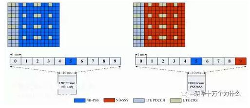 表1NB-IoT上行資源單位的subcarrier數(shù)目與slot數(shù)目組合。 其中3.75KHz Subcarrier Spacing只支持單頻傳輸,資源單位的帶寬為一個Subcarrier,時間長度是16個Slot,也就是32ms長。15KHz Subcarrier Spacing支持單頻傳輸和多頻傳輸,帶寬為1個Subcarrier的資源單位有16個Slot的時間長度,即8ms。帶寬為12個Subcarrier的資源單位則有2個Slot的時間長度,即1ms,此資源單位即是LTE系統(tǒng)中的一個Subframe。資源單位的時間長度設(shè)計為2的冪次方是為了在排程上可有效的運用資源,較不易產(chǎn)生資源空隙而造成資源浪費。 表1中NPUSCH Format 1的資源單位是用來傳送上行數(shù)據(jù)的。NPUSCH Format 2是NB-IoT UE用來傳送指示NPDSCH有無成功接收的HARQ-ACK/NACK,所使用的Subcarrier的索引(Index)是在由排程對應(yīng)的NPDSCH的下行配置(Downlink Assignment)中指示,重復(fù)傳送次數(shù)則是由無線資源控制模塊(Radio ResourceControl, RRC)參數(shù)配置。 同步訊號 NPSS(Narrowband Primary Synchronization Signal)為提供NB-IoT UE時間和頻率同步的參考訊號,但NPSS中并不帶有分區(qū)(Sector)ID。NSSS(Narrowband Secondary Synchronization Signal)帶有Physical Cell ID。NPSS與NSSS的資源位置避開了LTE系統(tǒng)中的控制區(qū)域,其資源位置如圖1。