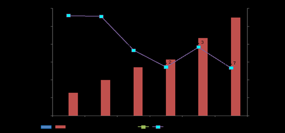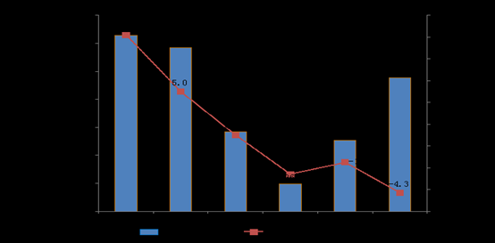 (二)互聯(lián)網(wǎng)應(yīng)用替代作用增強,傳統(tǒng)業(yè)務(wù)持續(xù)下降2017年,全國移動電話去話通話時長2.69萬億分鐘,比上年減少4.3%,降幅較上年擴大2.8個百分點。全國移動短信業(yè)務(wù)量6644億條,比上年減少0.4%。其中,由移動用戶主動發(fā)起的點對點短信量比上年減少30.2%,占移動短信業(yè)務(wù)量比重由上年的28.5%降至19.9%。彩信業(yè)務(wù)量只有488億條,比上年減少12.3%。移動短信業(yè)務(wù)收入358億元,比上年減少2.6%。 圖3-3 2012-2017年移動電話去話通話時長增速和移動用戶凈增情況
