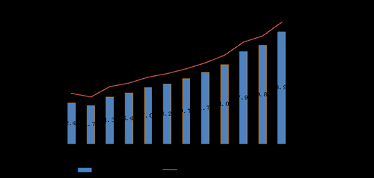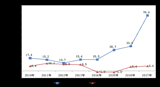 圖2-3 2012-2017年移動寬帶用戶(3G/4G)發(fā)展情況