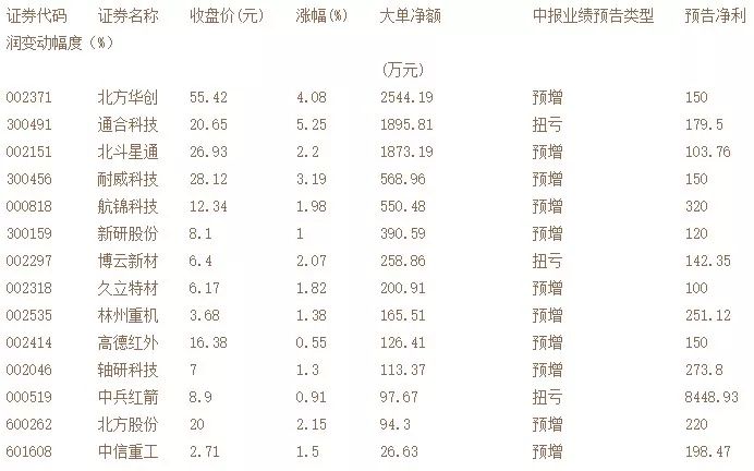 主頁(http://www.130131.com):資本環(huán)伺三航,北斗導(dǎo)航、大飛機(jī)、國產(chǎn)航母666 「 編者按:7月23日,受利好消息影響,軍工板塊大幅飆升,大飛機(jī)、北斗導(dǎo)航和航母等概念股紛紛上漲,通達(dá)股份、新勁剛、航天信息、通達(dá)動(dòng)力、西儀股份、航天動(dòng)力、雷科防務(wù)等個(gè)股實(shí)現(xiàn)漲停。統(tǒng)計(jì)顯示,當(dāng)天,59只軍工股合計(jì)資金凈流入達(dá)9.14億元。業(yè)內(nèi)人士表示,軍工科研院所是我國高精尖科技水平的最高代表,科研院所改制、參與到市場(chǎng)化競(jìng)爭當(dāng)中,所能釋放的紅利將是巨大的。 」 證券日?qǐng)?bào) 張穎 王珂 報(bào)道 Tryul 編輯 1 北斗導(dǎo)航 近3億元大單布局8只概念股 《證券日?qǐng)?bào)》市場(chǎng)研究中心根據(jù)同花順數(shù)據(jù)統(tǒng)計(jì)發(fā)現(xiàn),7月23日,北斗導(dǎo)航板塊表現(xiàn)突出,其整體上漲3.04%,有38只個(gè)股實(shí)現(xiàn)上漲,占比逾九成。其中,杰賽科技、雷科防務(wù)2只個(gè)股聯(lián)袂漲停,盈方微(8.62%)、中元股份(7.59%)、 航天電器(5.49%)、航天電子(5.16%)、歐比特(5.01%)等5只個(gè)股緊隨其后,昨日漲幅也均超過5%。此外,超圖軟件(4.88%)、漢鼎宇佑(4.53%)、合眾思?jí)眩?.02%)、國科微(3.22%)、耐威科技(3.19%)、航天晨光(3.07%)、中國衛(wèi)星(3.04%)、振芯科技(3.03%)等8只個(gè)股也均上漲3%以上。 資金流向方面,當(dāng)天板塊中共有26只個(gè)股呈現(xiàn)大單資金凈流入態(tài)勢(shì),其中,盈方微(7592.66萬元)、杰賽科技(4906.62萬元)、四維圖新(3965.47萬元)、歐比特(3491.17萬元)等4只個(gè)股大單資金凈流入均達(dá)到3000萬元以上,漢鼎宇佑(2246.07萬元)、北斗星通(1873.19萬元)、海格通信(1219.42萬元)、中元股份(1183.81萬元)等4只個(gè)股昨日也均受到1000萬元以上大單資金追捧,上述8只個(gè)股合計(jì)吸金2.65億元。 業(yè)績面上,截至7月23日,已有30家公司發(fā)布了2018年中報(bào)業(yè)績預(yù)告,業(yè)績預(yù)喜公司達(dá)到21家,占比七成。其中,啟明信息(303.37%)、林州重機(jī)(251.12%)、合眾思?jí)眩?47.99%)、漢鼎宇佑(170.00%)、耐威科技(150.00%)、中海達(dá)(140.00%)、北斗星通(103.76%)等7家公司報(bào)告期內(nèi)凈利潤有望同比翻番,高成長性較為顯著。另外,深賽格(81.96%)、超圖軟件(60.07%)、海格通信(50.00%)、雷科防務(wù)(50.00%)等4家公司也均預(yù)計(jì)上半年凈利潤同比增幅達(dá)到或超過50%。 對(duì)于北斗產(chǎn)業(yè)的投資策略,長城證券表示,北斗三號(hào)系統(tǒng)采用了眾多新技術(shù)提升用戶體驗(yàn),表明其在民用領(lǐng)域布局的決心,未來5年到10年自動(dòng)駕駛將真正走入生活,在國內(nèi)為自動(dòng)駕駛中提供高精度定位的系統(tǒng)將以北斗為主,北斗行業(yè)相關(guān)上市公司將有望在國內(nèi)自動(dòng)駕駛?cè)f億元規(guī)模的潛在市場(chǎng)中占有重要地位。 2 大飛機(jī) 逾九成公司中報(bào)業(yè)績預(yù)喜 《證券日?qǐng)?bào)》市場(chǎng)研究中心根據(jù)同花順數(shù)據(jù)統(tǒng)計(jì)發(fā)現(xiàn),7月23日大飛機(jī)板塊整體上漲4.43%,有31只成份股實(shí)現(xiàn)上漲,占比逾九成。具體來看,中航電子、航天動(dòng)力2只個(gè)股收獲漲停,中直股份(7.95%)、 中航飛機(jī)(7.36%)、航天電子(5.16%)等3只個(gè)股漲幅均逾5%,此外,包括航天科技(4.47%)、 南山鋁業(yè)(4.46%)、四川九洲(4.02%)、東方航空(3.99%)、洪都航空(3.50%)等在內(nèi)的26只個(gè)股昨日也均實(shí)現(xiàn)不同程度的上漲。 資金面上,當(dāng)天板塊中共有23只個(gè)股呈現(xiàn)大單資金凈流入態(tài)勢(shì),占比近七成。其中,中直股份(8235.15萬元)、中航飛機(jī)(6078.81萬元)、航天動(dòng)力(6047.07萬元)、南山鋁業(yè)(3627.94萬元)、東方航空(2329.72萬元)、中航電子(1263.52萬元)、航天科技(1001.90萬元)等7只個(gè)股昨日均受到1000萬元以上大單資金搶籌,合計(jì)吸金2.86億元。 業(yè)績方面,截至7月23日,已有13家公司披露2018年中報(bào)業(yè)績預(yù)告,12家公司業(yè)績預(yù)喜,占比逾九成。其中,德威新材(265.00%)、新研股份(120.00%)2家公司均預(yù)計(jì)上半年凈利潤實(shí)現(xiàn)同比翻番,而四川九洲、寶鈦股份、博云新材等3家公司報(bào)告期內(nèi)凈利潤也均有望實(shí)現(xiàn)扭虧為盈。 進(jìn)一步梳理發(fā)現(xiàn),上述12只中報(bào)業(yè)績預(yù)喜股中,新研股份(26.53倍)、金財(cái)互聯(lián)(27.13倍)、沃爾核材(28.62倍)等3只個(gè)股最新動(dòng)態(tài)市盈率均低于板塊平均估值(36.28倍),具備一定程度的估值優(yōu)勢(shì)。 對(duì)于板塊的后市機(jī)會(huì),華創(chuàng)證券指出,大飛機(jī)作為軍民同源“工業(yè)上的皇冠”,伴隨著關(guān)鍵部件與量產(chǎn)環(huán)節(jié)的突破,是最有希望通過復(fù)制“高鐵模式”實(shí)現(xiàn)自主可控的核心裝備領(lǐng)域。中短期看,隨著運(yùn)-20今年量產(chǎn)提速,相關(guān)產(chǎn)業(yè)鏈公司2018年也有望迎來業(yè)績拐點(diǎn)。 3 國產(chǎn)航母 機(jī)構(gòu)扎堆看好7只個(gè)股 《證券日?qǐng)?bào)》市場(chǎng)研究中心根據(jù)同花順數(shù)據(jù)統(tǒng)計(jì)發(fā)現(xiàn),7月23日國產(chǎn)航母板塊整體漲幅達(dá)到3.86%,顯著跑贏同期大盤,有32只成份股實(shí)現(xiàn)上漲。個(gè)股方面,中航機(jī)