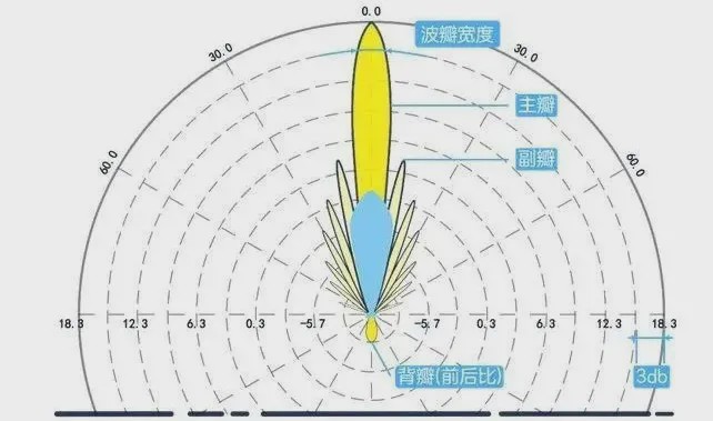 方向圖可用來說明天線在空間各個方向上所具有的發(fā)射或接收電磁波的能力。圖中通常都有兩個瓣或多個瓣,其中最大的瓣稱為主瓣,其余的瓣稱為副瓣。 5 波瓣寬度 又稱波束寬度或主瓣寬度或半功率角。波瓣寬度是指在主瓣最大輻射方向兩側(cè),輻射強度降低 3 dB(功率密度降低一半)的兩點間的夾角。波瓣寬度越窄,方向性越好,作用距離越遠(yuǎn),抗干擾能力越強。 6 前后比 前后比是指主瓣最大值與背瓣最大值之比。表明了天線對背瓣抑制的好壞。 7 增益 天線增益是指:在輸入功率相等的條件下,實際天線與理想的輻射單元在空間同一點處所產(chǎn)生的信號的功率密度之比。增益與天線方向圖有密切的關(guān)系,方向圖主瓣越窄,副瓣越小,增益越高。天線增益是用來衡量天線朝一個特定方向輻射電磁波的能力。需要注意的是天線本身不增加所輻射信號的能量,它只是通過天線振子的組合并改變其饋電方式把能量集中到某一個方向。 8 傾角 天線的傾角是指電波的傾角,而并不是天線振子本身機械上的傾角。傾角反映了天線接收哪個高度角來的電波最強。 9 隔離度 天線的隔離度指的是兩根天線或者一根雙極化天線的不相關(guān)性,隔離度參數(shù)合格保證了同扇區(qū)天線分集接收的性能。 10 駐波比 天線駐波比是表示天饋線與基站匹配程度的指標(biāo)。它的產(chǎn)生是由于入射波能量傳輸?shù)教炀輸入端后未被全部輻射出去,產(chǎn)生反射波,疊加而成的。 此外天線指標(biāo)還需要關(guān)注天線的下傾方式,以及端口數(shù),接頭,饋線等。 (中國集群通信網(wǎng) | 責(zé)任編輯:李俊勇) |