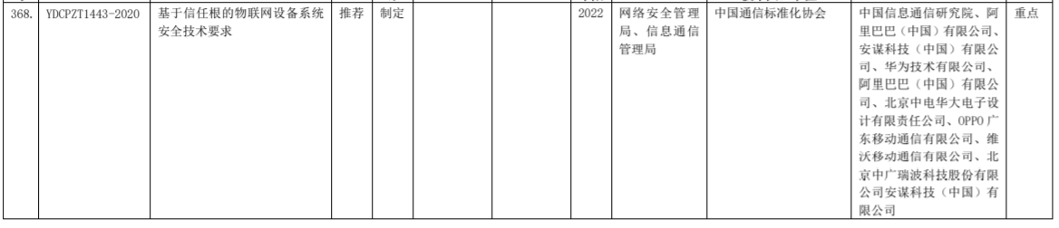 主頁(http://www.130131.com):工信部公示物聯(lián)網(wǎng)安全標(biāo)準(zhǔn)五大項(xiàng)目 今日,工信部根據(jù)標(biāo)準(zhǔn)化工作的總體安排,現(xiàn)將申請立項(xiàng)的《移動智能終端智能化能力及應(yīng)用總體要求》等914項(xiàng)行業(yè)標(biāo)準(zhǔn)進(jìn)行公示。其中物聯(lián)網(wǎng)安全標(biāo)準(zhǔn)共涉及5大項(xiàng)目,均為重點(diǎn)標(biāo)準(zhǔn),包括《物聯(lián)網(wǎng)標(biāo)識解析安全技術(shù)要求》、《物聯(lián)網(wǎng)業(yè)務(wù)安全態(tài)勢感知系統(tǒng)技術(shù)要求》、《物聯(lián)網(wǎng)終端安全態(tài)勢感知系統(tǒng)技術(shù)要求》、《基于區(qū)塊鏈的物聯(lián)網(wǎng)設(shè)備標(biāo)識與解析系統(tǒng)的總體技術(shù)要求》以及《基于信任根的物聯(lián)網(wǎng)設(shè)備系統(tǒng)安全技術(shù)要求》。 相關(guān)物聯(lián)網(wǎng)安全標(biāo)準(zhǔn)項(xiàng)目、主要起草單位如下: