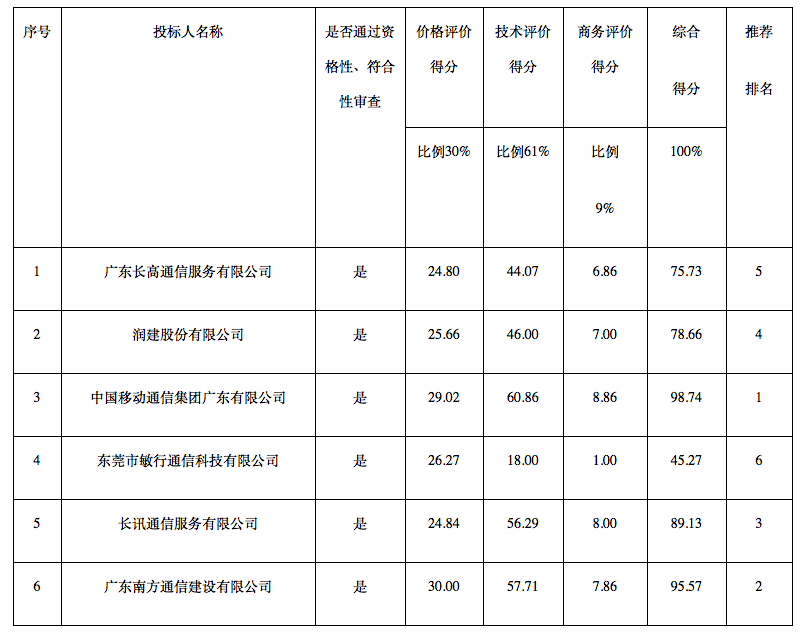 本項目包括清遠市350兆警用數(shù)字集群通信(PDT)系統(tǒng)建設(shè),中標金額2182.33萬元;清遠市交警支隊二廣高速350兆數(shù)字集群(PDT)系統(tǒng)建設(shè),中標金額298.67萬元,總金額2481萬元。 本次中標產(chǎn)品包括各個載頻的標準數(shù)字固定基站、數(shù)字車載移動基站、便捷式中轉(zhuǎn)臺等,廣東移動的供貨商是東方通信。 公開信息顯示,投標人包括廣東長高通信服務(wù)有限公司、潤建股份有限公司、廣東移動、東莞市敏行通信科技有限公司、長訊通信服務(wù)有限公司、廣東南方通信建設(shè)有限公司。本次招標評分從價格、技術(shù)、商務(wù)三方面綜合評判,廣東移動價格分排名第二、技術(shù)分排名第一、商務(wù)分排名第一,以總分98.74分中標。 招標信息稱,清遠市現(xiàn)有350兆數(shù)字集群(PDT)網(wǎng)有27個固定基站共35個載頻和1個1載頻車載移動基站,所有基站主要負責覆蓋各市縣區(qū)的中心重點區(qū)域和路段及清連、京珠、廣樂三條高速的部分主要路段和出入口。 系統(tǒng)整體規(guī)模較小,信號覆蓋范圍有限,而且大部分為單載頻基站,通話容量嚴重不足,已無法滿足公安調(diào)度指揮、執(zhí)勤執(zhí)法、打擊犯罪等警務(wù)工作對無線通信保障的迫切需求,另外,隨著350兆數(shù)字集群(PDT)的發(fā)展,PDT出臺了新的技術(shù)規(guī)范和標準,公安部、省公安廳也對350兆數(shù)字集群(PDT)建設(shè)提出了新要求。為此,清遠市公安局進行了350兆數(shù)字集群(PDT)招標,目標建設(shè)形成以公安管理為主、社會聯(lián)動使用的無線應(yīng)急通信指揮網(wǎng),項目預(yù)算金額為2997.89萬元。 (中國集群通信網(wǎng) | 責任編輯:陸濤) |