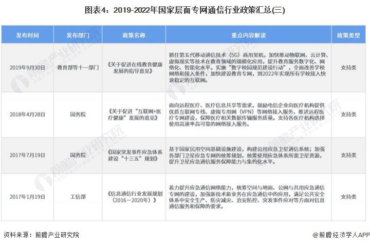 2、國家層面專網(wǎng)通信行業(yè)政策匯總及解讀 ——國家層面專網(wǎng)通信行業(yè)政策匯總 專網(wǎng)通信作為一種安全可靠的無線服務(wù)的專業(yè)網(wǎng)絡(luò),近些年來,國家陸續(xù)出臺各項產(chǎn)業(yè)政策,引導(dǎo)專網(wǎng)通信行業(yè)發(fā)往規(guī)范化、高端化發(fā)展,推動專網(wǎng)通信在公共安全、公共事業(yè)和工商業(yè)等各方面的應(yīng)用,鼓勵通信行業(yè)轉(zhuǎn)型升級、提質(zhì)增效,為通信行業(yè)的發(fā)展提供了良好的環(huán)境。