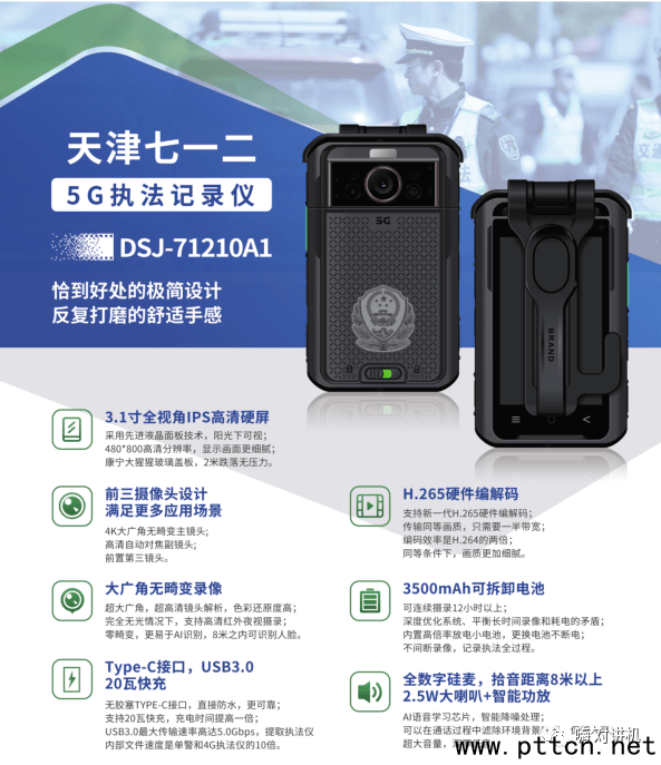智能POC終端TR-P400 執(zhí)法記錄儀 執(zhí)法記錄儀有5G執(zhí)法記錄儀DSJ-71200A1和5G執(zhí)法記錄儀DSJ-71210A1兩款: