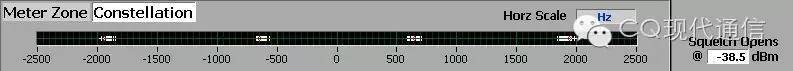 4FSK調(diào)制信號在每個符號點的偏移,可以通過星座圖來觀察。X軸為頻率,中間0代表f0中心頻率。下圖所示4個白色塊為模糊區(qū),紅點為當(dāng)前值。模糊區(qū)越小,表示樣機性能越好。紅點表示4個碼元對應(yīng)的頻點。