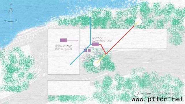 我們用兩段約10m長(zhǎng)的軍用Dipole銅線,接到天調(diào)地線并分別向東和向南分開(kāi)垂放在樓面和一側(cè)的金屬棚頂。 無(wú)論是野外或是海島架臺(tái),天線的架設(shè)可能是此行最大的經(jīng)驗(yàn)收獲。無(wú)論那種架設(shè)方法,沒(méi)有原則上的誰(shuí)對(duì)誰(shuí)錯(cuò),只有在現(xiàn)場(chǎng)環(huán)境下選擇適合或更適合的架設(shè)方式,因此在天線的選擇方面可以在便攜性與高效率之間權(quán)衡。