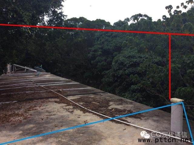 我甚至不會(huì)忘記帶饋線,因?yàn)闊o(wú)論是饋線和控制線都是直接安裝到天調(diào)里邊的。擴(kuò)展長(zhǎng)度也非常簡(jiǎn)單,網(wǎng)上早已經(jīng)有擴(kuò)展接口出售。在家中閑置的電線堆里,隨手剪一段13m的電源線備用。海島架臺(tái)的地方有較高的樹(shù)和民房,拉天線絕對(duì)不會(huì)有問(wèn)題了,而且有高度。 海島上有一列一層高的平房,自東往西方向延伸、座北朝南。我們借來(lái)了梯子上到平房頂視察,有兩棵樹(shù)在西南和東北角,可以在之間架設(shè)天調(diào)的主輸出振子。