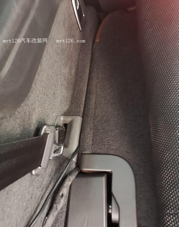順著第2排座位的邊緣把線塞進(jìn)去了?梢钥吹竭@個地方,縫隙不大,做工挺好。我是用塑料鏟子使勁兒把線塞進(jìn)去的。