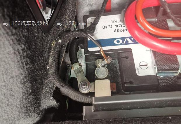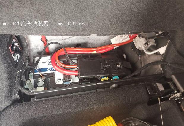 安裝在了駕駛座下面。線路走到了后備箱。沃爾沃的主電瓶在后備箱左側(cè)。我把具體的安裝步驟一步一步分解吧。但是安裝的時候,自己沒有來得及照片兒。