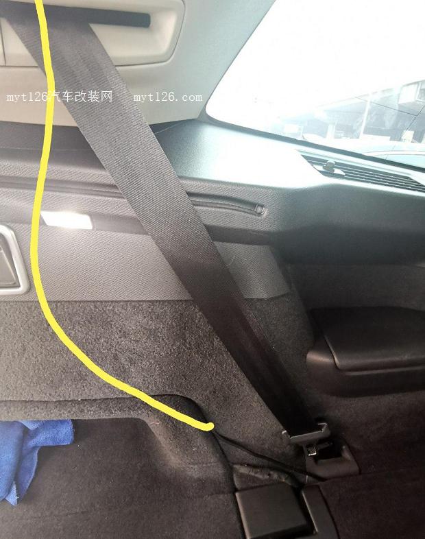 繼續(xù)走線到第三排坐位這兒,順著邊兒走過來。不要問我為什么天線會這樣走,因?yàn)榫不夠長