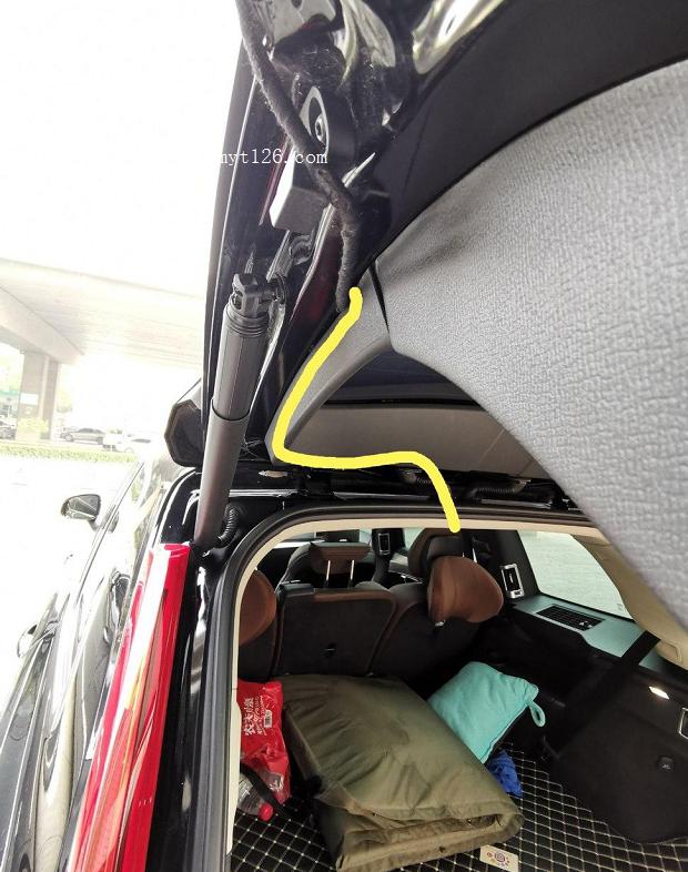 把天線從尾門的保護(hù)管中慢慢的穿過去,千萬把弄壞了那個保護(hù)套。不過這個保護(hù)套可以從上面的根部拆下來,方便走線。線路穿過后再安裝回去就可以。