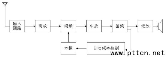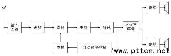 主頁(http://www.130131.com):TRA08型調頻收音機/對講機工作原理 TRA08型調頻收音機,對講機基本功能如下: (1)按下FM鍵,調頻收音機功能,接收調頻電臺。 (2)復位FM鍵,對講機功能,共有4個頻率,分別為F1,F2,F3,F4,可通過面板上的按鍵選擇。 超外差單聲道和立體聲調頻收音機組成結構框圖如下: