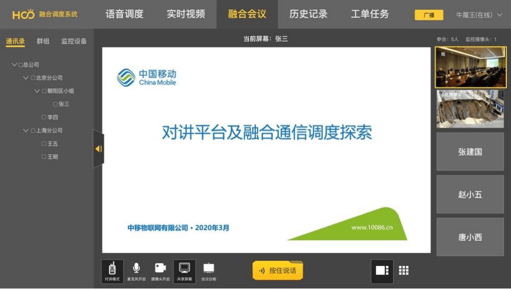 集多媒體系統(tǒng)于一體的智能化遠(yuǎn)程指揮解決方案 中國(guó)移動(dòng)融合調(diào)度系統(tǒng)平臺(tái),是集視頻監(jiān)控、視頻會(huì)議、集群對(duì)講、應(yīng)急預(yù)案、數(shù)據(jù)實(shí)時(shí)回傳錄播等功能于一體的綜合應(yīng)急指揮調(diào)度解決方案。為重點(diǎn)行業(yè)如公共安全、交通運(yùn)輸、政府應(yīng)急等提供應(yīng)急中心融合通信、安全生產(chǎn)應(yīng)急融合調(diào)度、現(xiàn)場(chǎng)融合應(yīng)急通信等全方位解決方案。