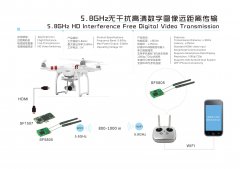 SF5805 是由深圳市金葵花科技有限公司推出的一款 5.8GHz 高清數(shù)字圖像傳輸方案,目的是解決無人機遙控裝置和圖傳系統(tǒng)之間同頻( 2.4GHz )干擾的問題,實現(xiàn)數(shù)字高清圖像的低延時、遠距離傳輸,也解決了模擬圖傳只能傳輸 D1 ( 720*576 )畫質清晰度的不足。