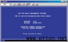 用寫頻器將電臺與計算機連接好(計算機系統(tǒng)要求WIN98)。 啟動微機按F8進入純DOS系統(tǒng),鍵入軟件存放路徑運行軟件。 調(diào)出《TK868電臺服務(wù)軟件》屏幕顯示如下: 按任意鍵繼續(xù)下面的操作 按任意鍵,屏幕出現(xiàn)寫頻主菜單 FILE文件 MODEL模式 EDIT編輯 PROGRAM編程