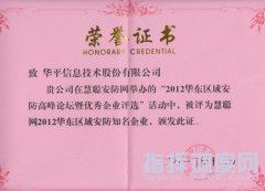 近日,由慧聰安防網(wǎng)主辦的 2012華東區(qū)域安防高峰論壇暨優(yōu)秀企業(yè)評選活動于杭州舉行。華平股份在此次論壇上,榮獲2012華東區(qū)域安防知名企業(yè)稱號。 2012華東區(qū)域安防知名企業(yè) 榮譽(yù)證書 此次高峰論壇以挑戰(zhàn)、機(jī)遇、變革為話題,行業(yè)專家同與會企業(yè)就安防未來的