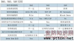 高清監(jiān)控一般以網(wǎng)絡(luò)存儲(chǔ)架構(gòu)方案為主,目前的網(wǎng)絡(luò)存儲(chǔ)架構(gòu)大致分為:直連附加存儲(chǔ)(DAS:Direct Attached Storage)、網(wǎng)絡(luò)附加存儲(chǔ)(NAS:Network Attached Storage)、存儲(chǔ)區(qū)域網(wǎng)絡(luò)(SAN:Storage Area Network)。