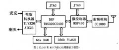 發(fā)射時(shí),麥克送來(lái)的模擬語(yǔ)音經(jīng)CMX618內(nèi)部進(jìn)行增益調(diào)節(jié),A/D轉(zhuǎn)換和壓縮處理,然后通過(guò)SPI(串行外圍設(shè)備接口)進(jìn)入CMX7141基帶處理器