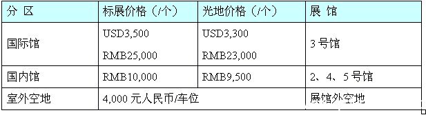 | 參展費(fèi)用 |  注:■光地最少租用18 m2; ■中國(guó)安全防范產(chǎn)品行業(yè)協(xié)會(huì)會(huì)員每展位優(yōu)惠500元人民幣; ■連續(xù)參展企業(yè)享受展費(fèi)優(yōu)惠; |