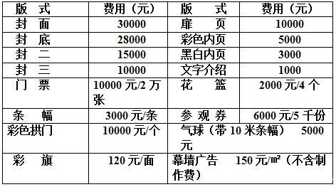 參展費用: 1、國際標(biāo)準(zhǔn)展臺(9 M²):國內(nèi)企業(yè)8000元/個,外資企業(yè) $2000/個(角位展臺加收10%)(含中英文楣板、三面圍板、一張洽談桌、兩把椅子、兩盞射燈、一個220V/10A電源插座、地毯、會場保安、會場清潔等); 2、室內(nèi)光地(27 M² 起租):800元/ M² 、外資$200/ M²(自付施工管理費:¥20元/ M²)----特裝展臺限高5米; 3、室外光地:(27 M²起租):600元/ M² 、外資$160/ M²(自付施工管理費:¥20元/ M²)